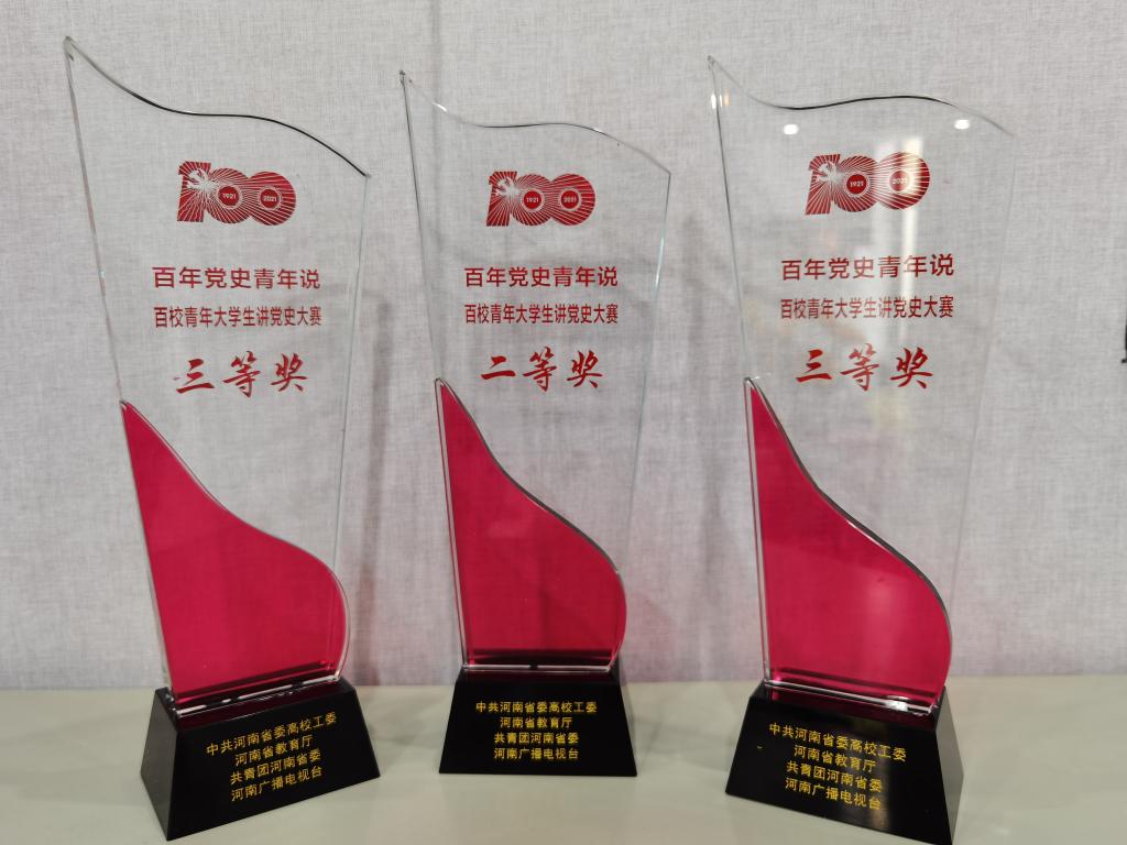 为庆祝中国共产党成立100周年,在全省青年学生中深入开展学习党的历史,坚定理想信念活动,由中共河南省委高校工委、河南省教育厅、共青团河南省委、河南广播电视台主办的“百年党史青年说”——百校青年大学生讲党史大赛暨汇报展演于5月20日在郑州师范学院嵩山学堂举行。据悉,大赛从省内119所高校征集了712件作品,经过层层筛选,62所高校的100件作品进入复赛,又从中遴选出10件作品以“一堂特殊的思政课”的形式展现在观众面前。我校的三件作品《中国最强音》《向人民报到》《心愿》脱颖而出、进入百强,其中《中国最强音》节目作为压轴参加展演。