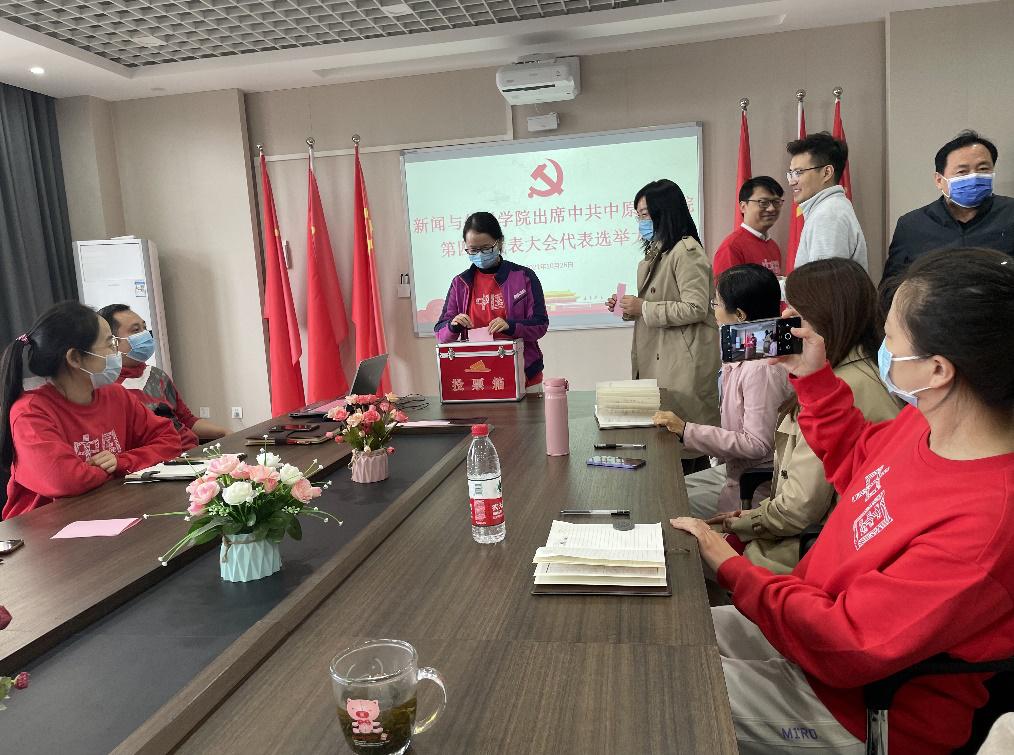 10月26日下午,新闻与传播学院召开出席中共williamhill威廉希尔第四次代表大会代表选举大会,大会由学院党委书记崔涛主持。按照大会议程,全体党员学习领会了《关于做好中国共产党williamhill威廉希尔第四次代表大会代表选举工作的通知》(中工党〔2021〕46号)文件精神;表决通过了《选举办法》,表决通过蔡爱芳为总监票人,闫朝、娄晶晶为监票人,会议指定刘念、宋燕歌为计票人;经无记名投票,选举产生了崔涛、杨静、马肖华、丁颖、高明烨等5名同志为学院出席学校第四次党代会代表。