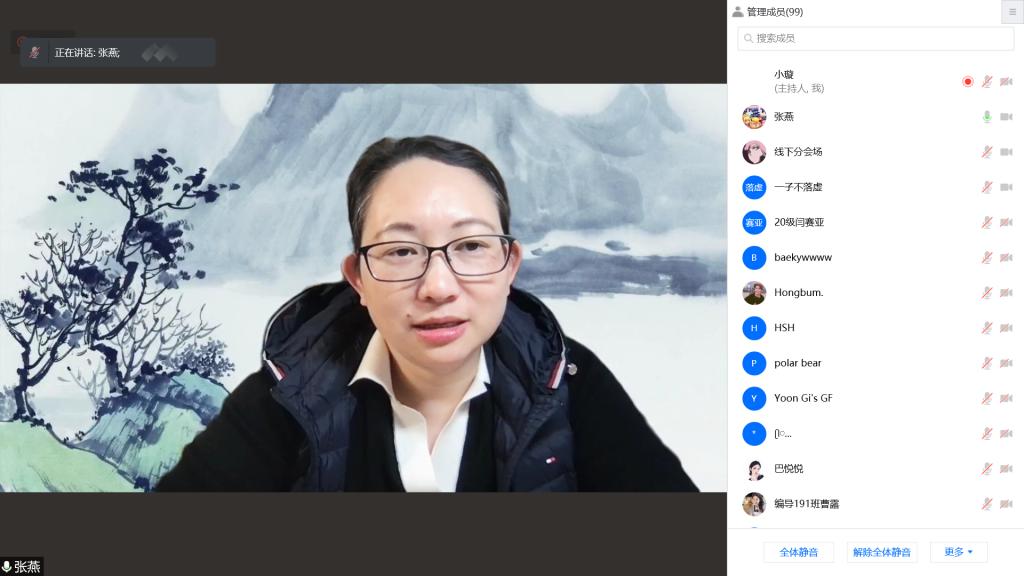 为促进学术交流,提高科研素养,11月19日下午,我院邀请北京师范大学张燕教授作了题为《剑啸江湖-香港武侠电影》的学术报告。此次会议采用线上线下相结合的方式进行。报告会由我院院长杨静教授主持。我院师生聆听了报告。
