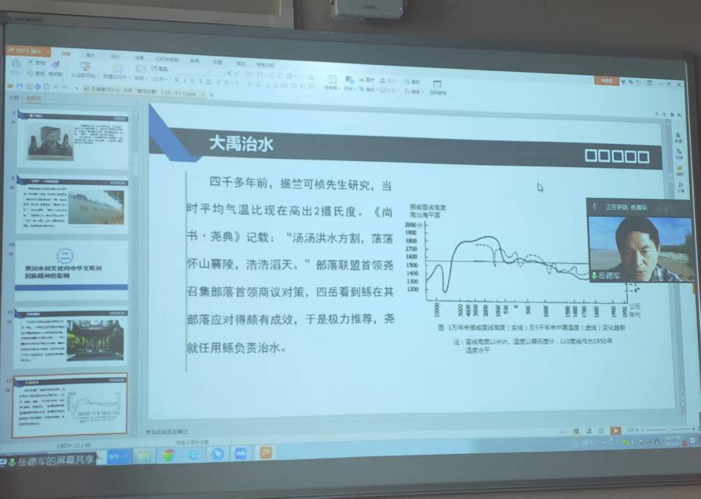 4月26日下午,国家出版基金评审专家、黄河水利委员会高级工程师、黄河水利出版社副社长岳德军受邀线上为我校师生做了题为《弘扬黄河文化,讲好“黄河故事”》学术报告。我院师生及学校其他文科学院师生聆听了报告。此次报告会是我院科研素养提升系列学术报告及“能力提升年”系列活动的一部分。我院副院长李建波主持报告会。