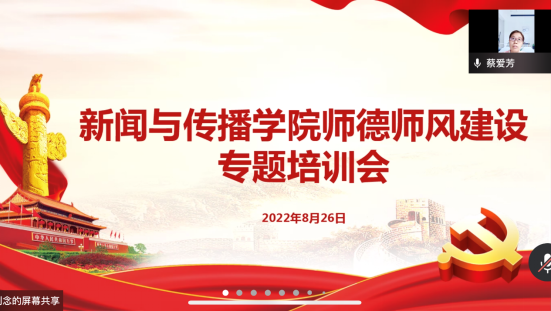 为了建设一支政治素质过硬、业务能力精湛、育人水平高超的高素质教师队伍,8月26日晚,我院线上召开了师德师风建设专题培训会。学院全体教职员工参加,学院党委书记崔涛主持。