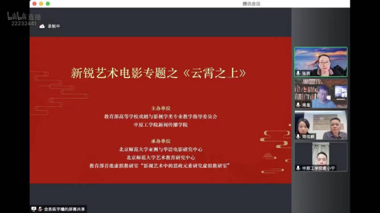 活动以线上直播方式进行,在线聆听互动的师生达6000多人。北京师范大学周星教授、中国美术学院刘智海教授、周佳鹂副教授、教育部高等学校戏剧与影视学类专业教学指导委员会秘书长张燕教授等学者国绕“新锐艺术电影专题之《云霄之上》”一题开展了精彩演讲。
