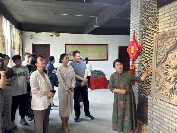 澄泥砚是中国四大名砚之一,是黄河文化的特色,也是省级非物质文化遗产。在澄泥砚工作室,海然副校长一行认真聆听讲解员对澄泥砚的讲解,仔细端详每一件展品。在聆听完在澳门回归之际河南人民用澄泥砚制作工艺打造“九龙日晷”赠予澳门时,海然副校长不仅慨叹,每一件精美的澄泥砚背后都是无数匠人的心血,新闻与传播学院要挖掘出澄泥砚背后的故事,并发扬光大!
