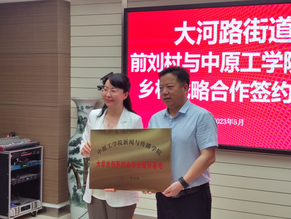 初夏的五月,前刘村绿树成荫、轻风送爽。签约授牌仪式结束后,海然副校长一行来到前刘村为“新闻与传播学院黄河文化创新传播实践基地”揭牌。黄河文化创新传播和思政育人是新闻与传播学院着力打造的学科专业特色亮点,是学院致力于融入传播传承中华优秀传统文化国家战略、河南文化强省战略和前刘村和美乡村建设战略的重要举措。