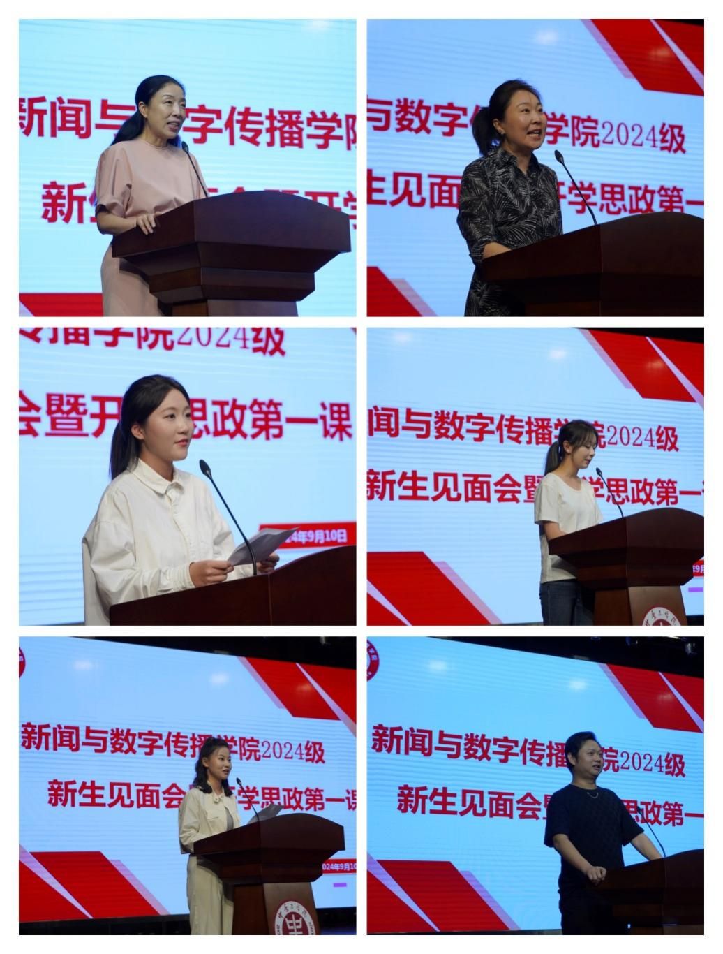 教师代表王欢对如何度过大学生活、学好专业知识提出了宝贵的建议。老生代表张付阳寄语学弟学妹们,要以新闻传播为志业,追寻真理,锻造自我。新生代表赵思涵、计然表示,感谢学校给予这个学习和成长的机会,将会以更加严谨认真的态度去求知,牢记“博学弘德,自强不息”校训,传承中工人的荣光与梦想。