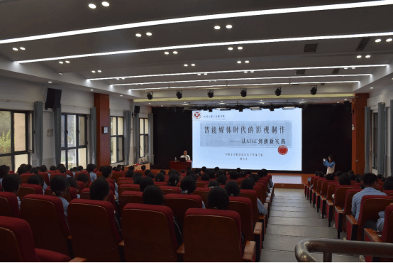 张锋进一步介绍了我校的发展规划、办学实力、特色专业、教学成果等内容。蒋东升以《智能媒体时代的影视制作》为题作了科普讲座,结合人工智能时代背景、具体案例,讲授了AIGC在影视创作中的应用,激发现场学生对人工智能融入影视制作的强烈兴趣。