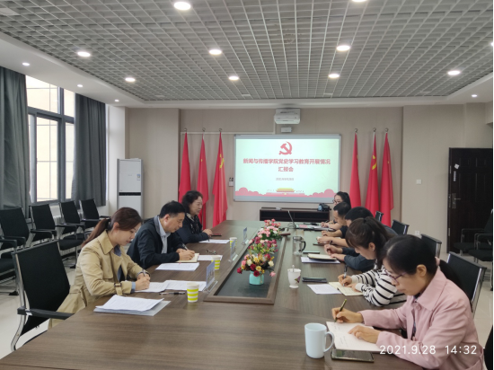 9月28日下午,学校党史学习教育第七指导组组长、副校长刘洲峰一行3人到我院就党史学习教育开展情况进行检查指导,并调研学院工作。学院党委书记崔涛、副书记马肖华、副院长蔡爱芳、副院长刘念和学工办老师出席会议。