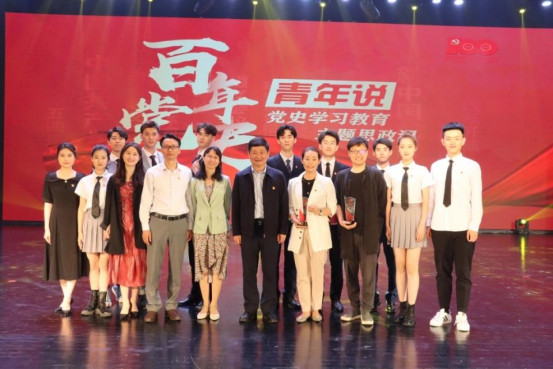 近日,河南省“百年党史青年说”——百校青年大学生讲党史大赛汇报展演暨颁奖典礼隆重举行。我校选送的学生情景朗诵《中国最强音》作为10件优秀作品之一参加现场汇报展演,播音专业11名同学在播音系专业老师指导下几经打磨剧本、坚持不懈练习,圆满完成演出任务,精彩表演博得现场观众阵阵掌声。