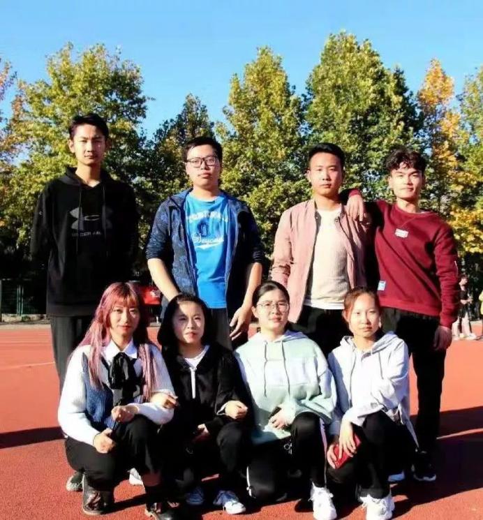 在运动会结束后,学生会工作人员在中心操场合影留念。