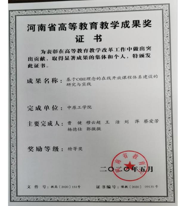 3.省级教学质量工程项目(河南省2020年一流本科课程证书)