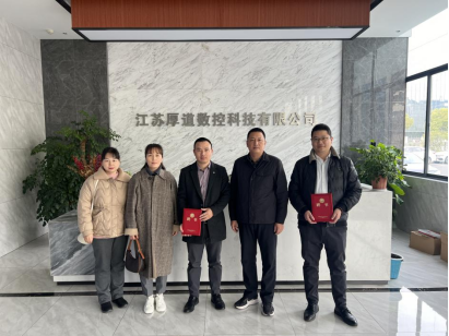 在江苏厚道数控科技有限公司,崔涛一行参观了数控机床安装车间,与企业负责人进行深入交流,了解企业的运营状况、人才需求和技术发展趋势等。企业负责人详细介绍了公司的用工需求和岗位所需技能,双方表示将在人才培养、实习就业、产教融合方面深入开展合作。最后,崔涛向企业负责人颁发了学院创新创业指导教师聘书,并希望企业能够将最新的管理文化和社会经验带入课堂,帮助学生扩展专业实践经验。在二元(苏州)工业科技有限公司,一行人探望了我院校友王韬,双方就直播行业的新动态和网络销售平台的搭建等内容开展了深入交谈,并就下一步在人才培养、学生就业等方面的合作达成初步意向。